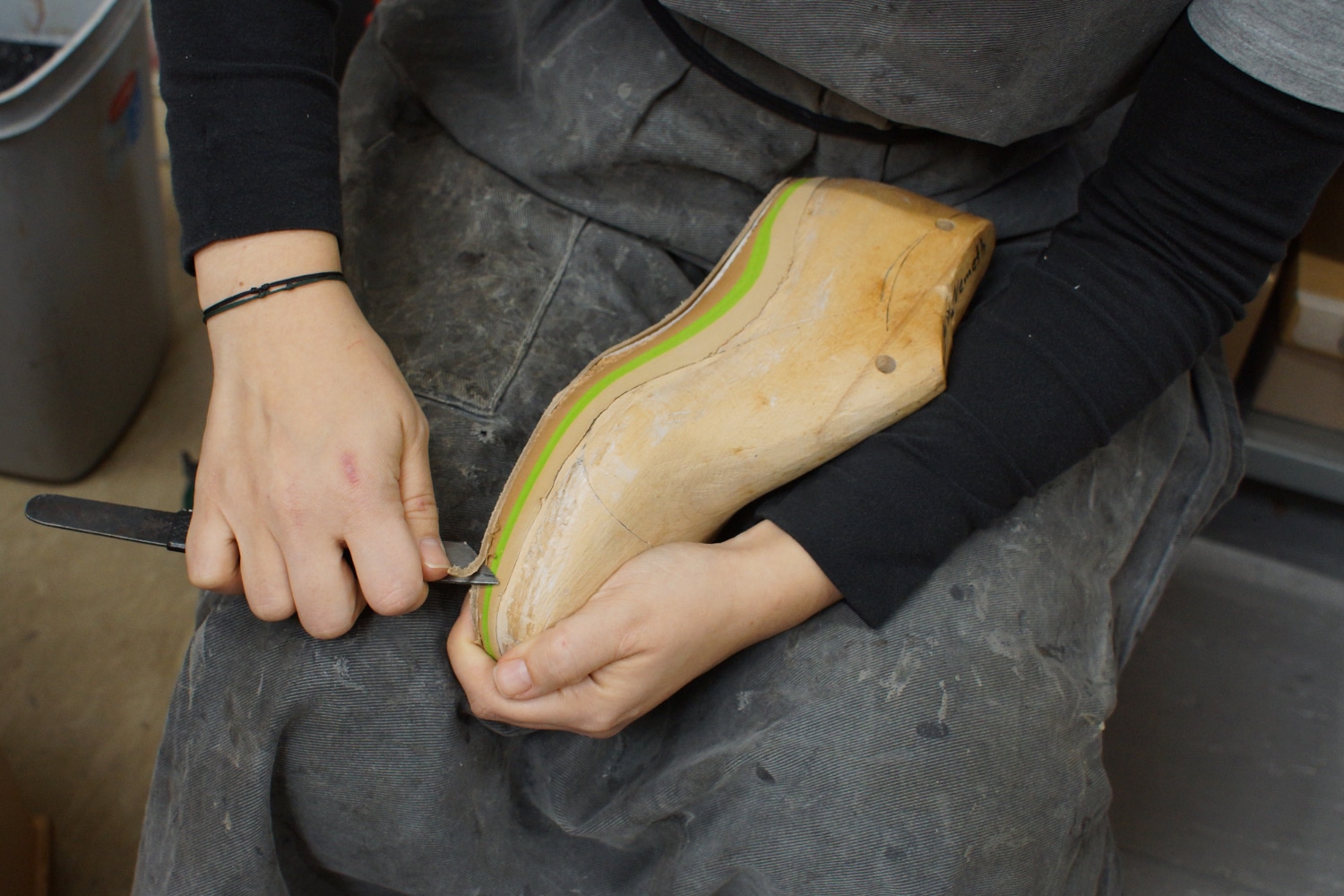 Nun kann der Schuh endgültig gefertigt werden – die sogenannte Bodenarbeit beginnt.